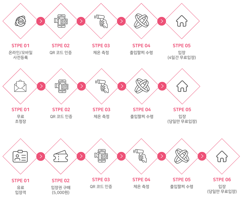 사전등록자(온라인, 모바일), 기자, 기관단체 관계자, 초중고등학생 이하, 만 65세 이상, 국가유공자, 장애인